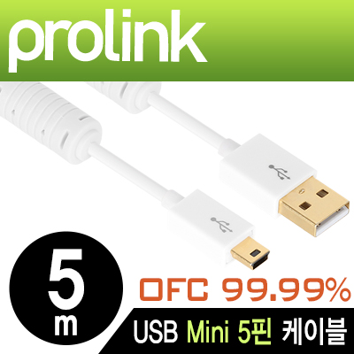 • 프로링크 PMM368N-0500 PMM시리즈 USB2.0 Mini 5핀 케이블 5m (OFC/24K금도금/노이즈 필터)