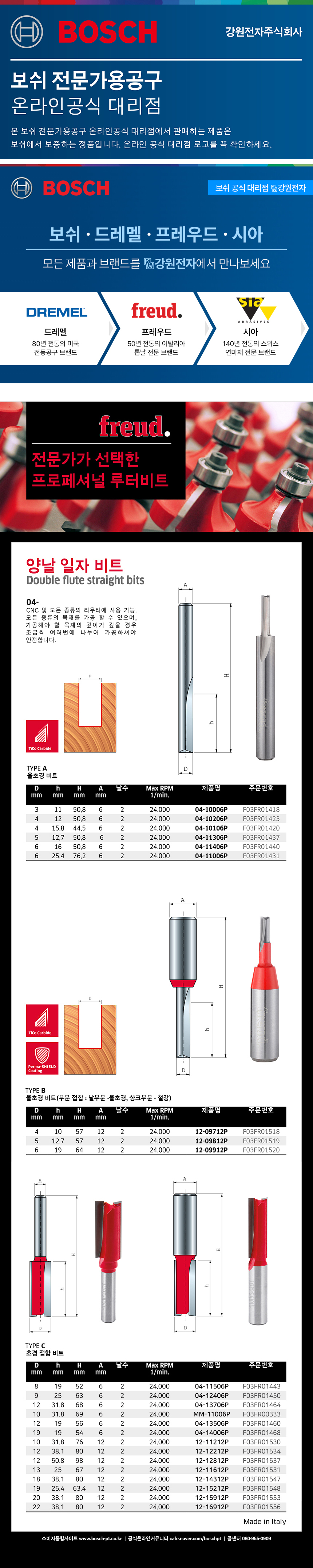 보쉬, 프레우드, freud, 라우터날, 루터용, 루터비트, 루터날, 양날일자비트, 초경접합비트