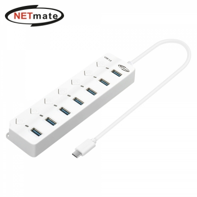 • 강원전자 넷메이트 USB3.0 Type C 7포트 허브 (화이트) NM-UBC305W