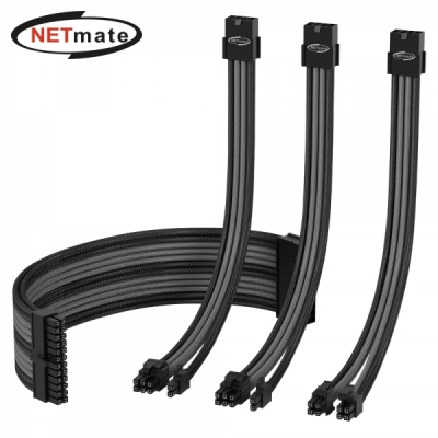 • 강원전자 넷메이트 PSU 연장 18AWG 슬리빙 케이블 세트 (블랙/그레이 4종) [EZDIY-FAB] NM-DPI1246