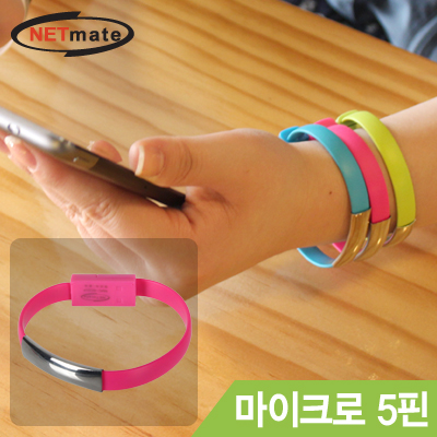 • 강원전자 넷메이트 NMC-BC01P 마이크로 5핀 데이터·충전 팔찌 케이블(핑크)