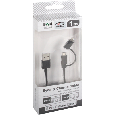 • 강원전자 넷메이트 NMC-ML10B 마이크로 5핀 & 라이트닝 8핀 2 in 1 케이블 1m(블랙/MFi 공식인증)