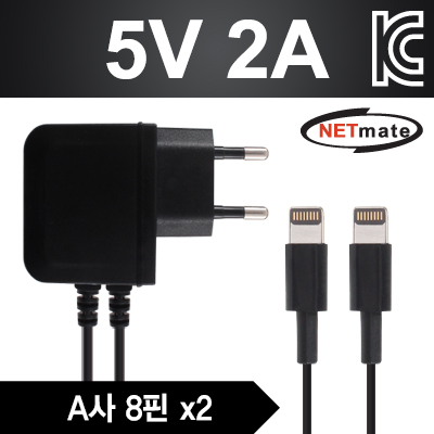 • A사 8핀 지원 기기 2대 동시 충전 / 입력: AC 110-240V 50/60Hz 0.3A, 출력 DC 5V 2A