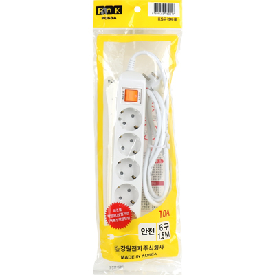 • 강원전자 PnK 안전 멀티탭 6구 접지 1.5m (10A) P068A