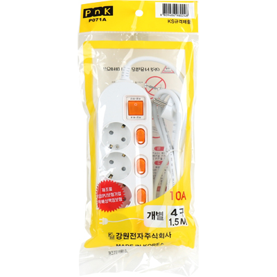 • 강원전자 PnK 안전 멀티탭 4구 개별 1.5m (10A) P071A