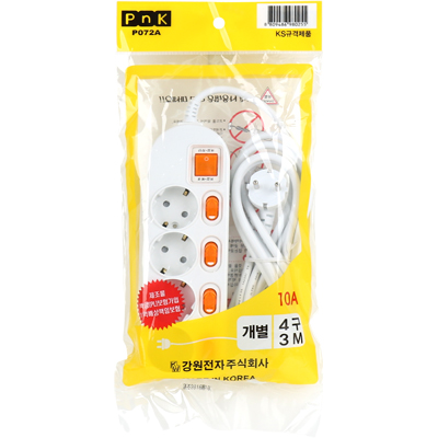 • 강원전자 PnK 안전 멀티탭 4구 개별 3m (10A) P072A